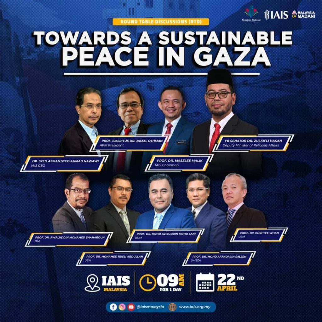 Terdahulu, dengan semangat #IhsanUntukPalestin, saya menyampaikan Ucaptama dan merasmikan Majlis Penutup Sidang Meja Bulat: “Towards a Sustainable Peace in Gaza” anjuran IAIS Malaysia dan Akademi Profesor Malaysia (APM). Sesi Meja Bulat kali ini yang dihadiri oleh profesor-profesor dan pimpinan Badan Masyarakat Madani (CSO) mengisytiharkan Resolusi Khas Gaza dan akan dijadikan sebagai Policy Brief untuk rujukan kerajaan dan umum. Tahniah IAIS Malaysia dan APM!