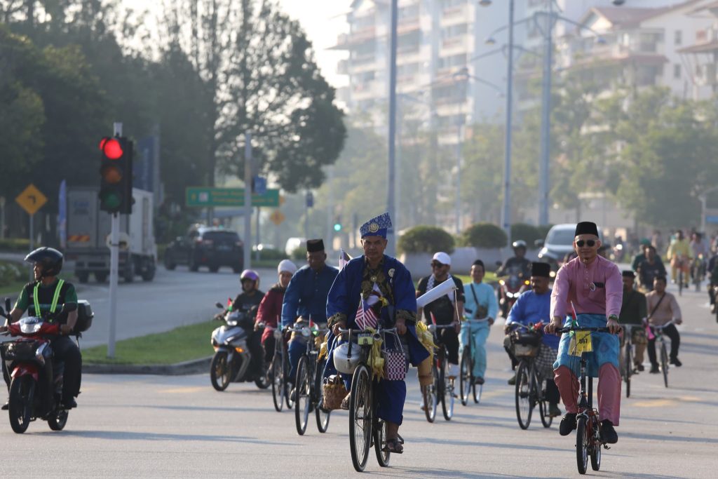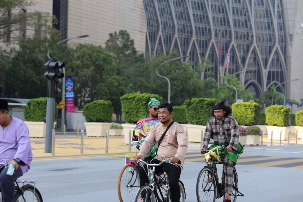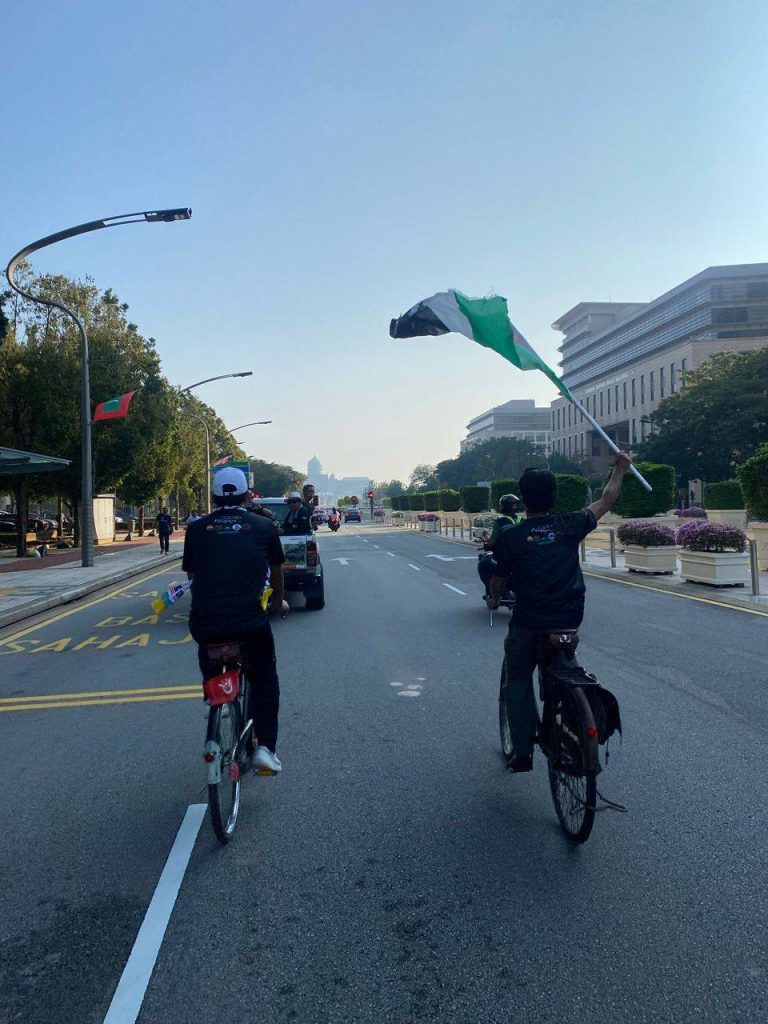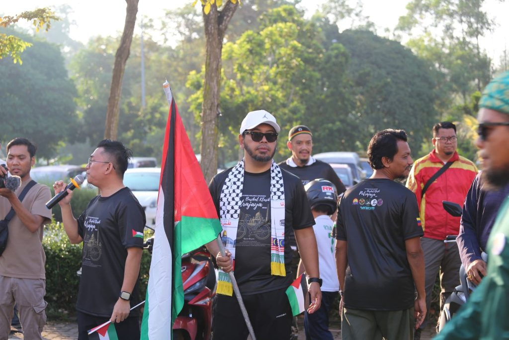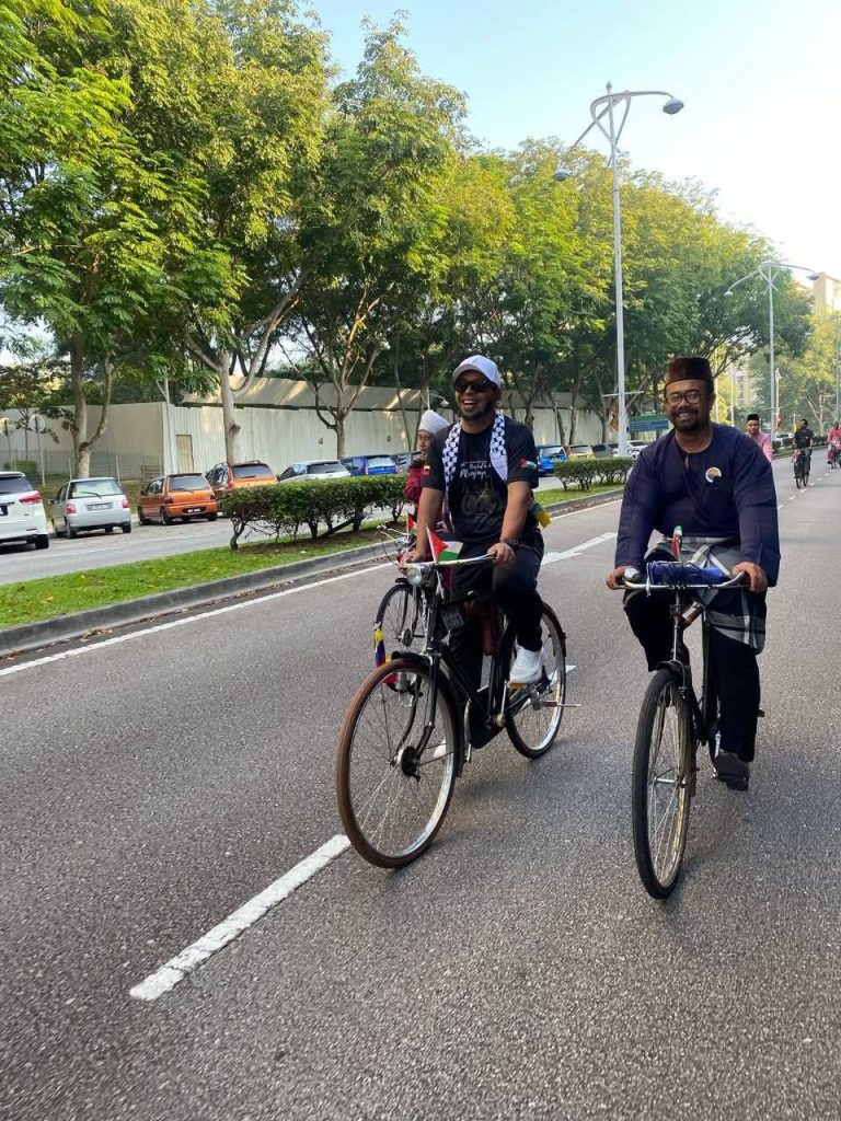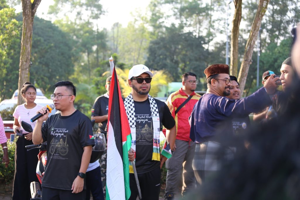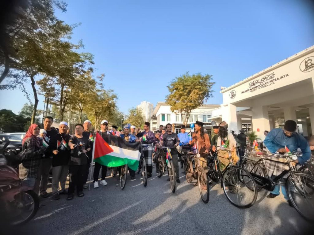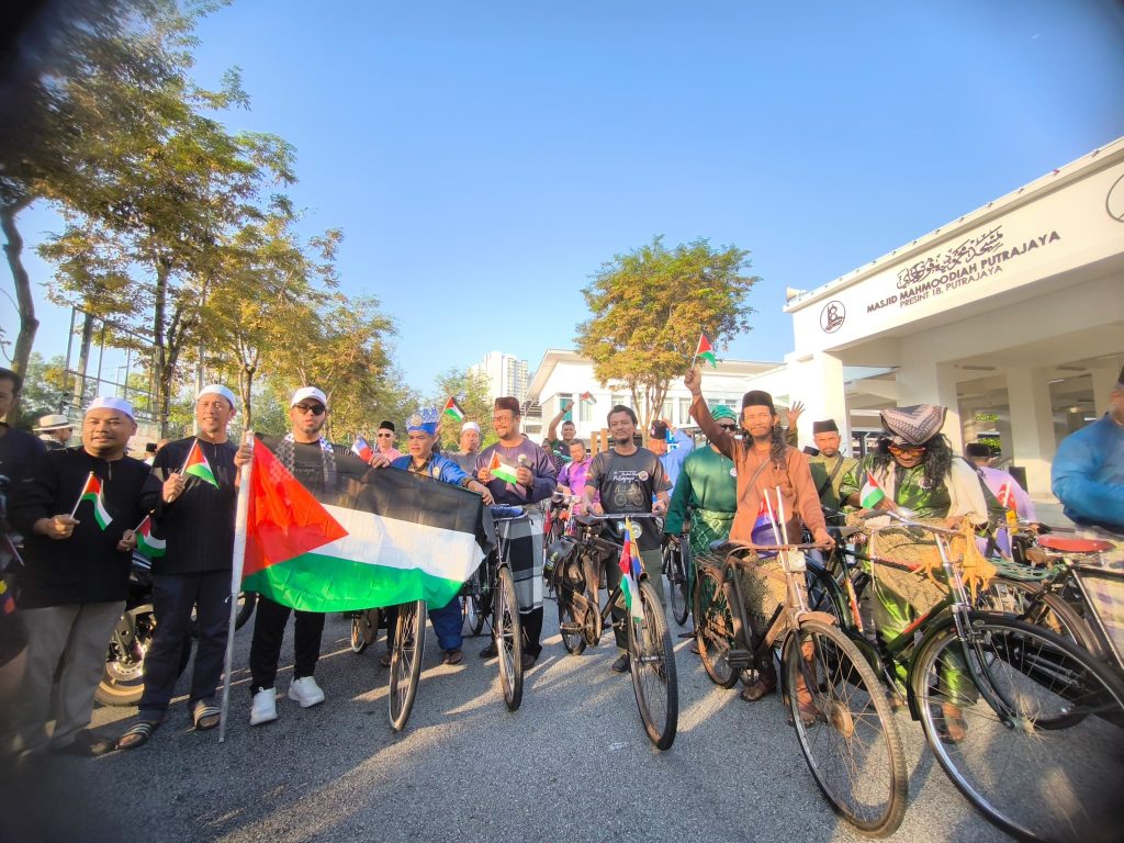 Begitu meriah dan ceria dengan peserta segak berbusana, berbaju Melayu dan berbaju kurung serta kebaya. Ada juga kawan-kawan bukan Muslim yang hadir turut serta, saya sangat hargai. Kayuhan dari Masjid Mahmoodiah ke Masjid Putra, Putrajaya ini juga menunjukkan solidariti kepada saudara kita di Palestin.