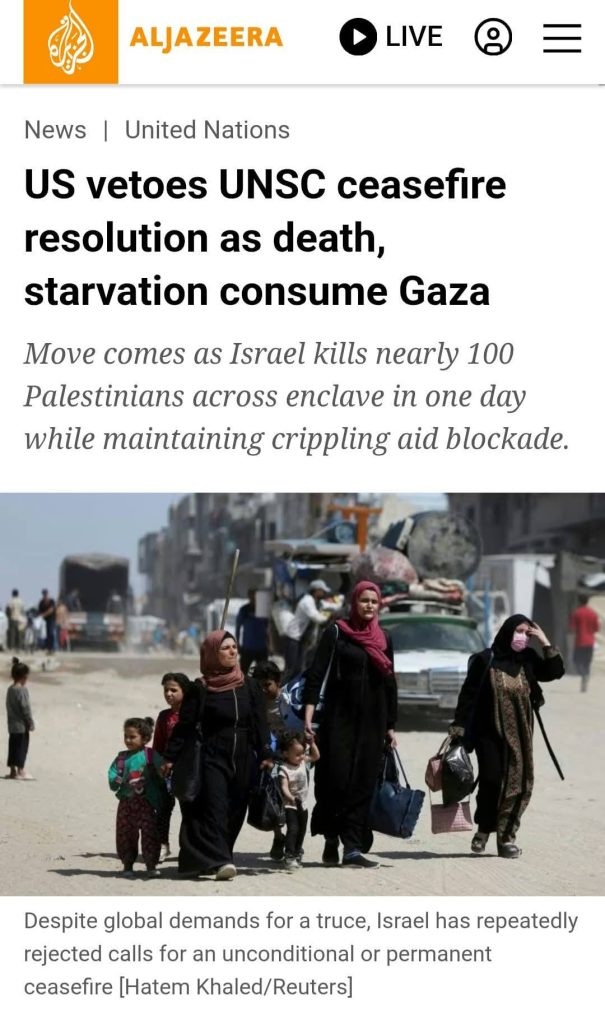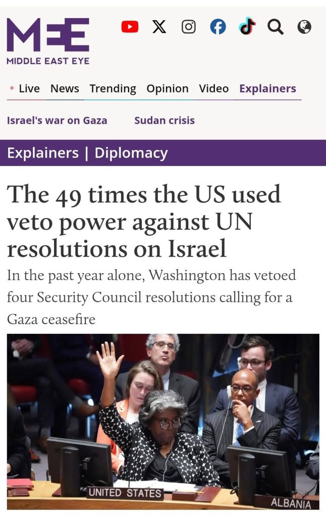 Sejak penubuhan PBB, sejarah menunjukkan begitu banyak dan konsisten kuasa veto digunakan untuk melindungi sang rejim yang zalim. Bersempena Hari Arafah dan Aidiladha, jom kita semua berdoa setulusnya, memperbanyakkan Qunut Nazilah dan menunaikan Solat Hajat untuk saudara kita di Palestin.