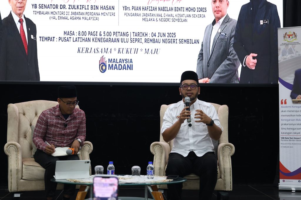 Menyampaikan perkongsian dalam Program Seminar Kenegaraan Malaysia Madani, di Pusat Latihan Kenegaraan Ulu Sepri, Rembau, Negeri Sembilan.