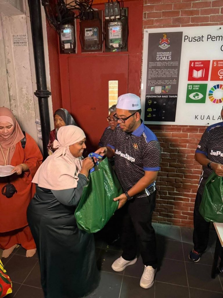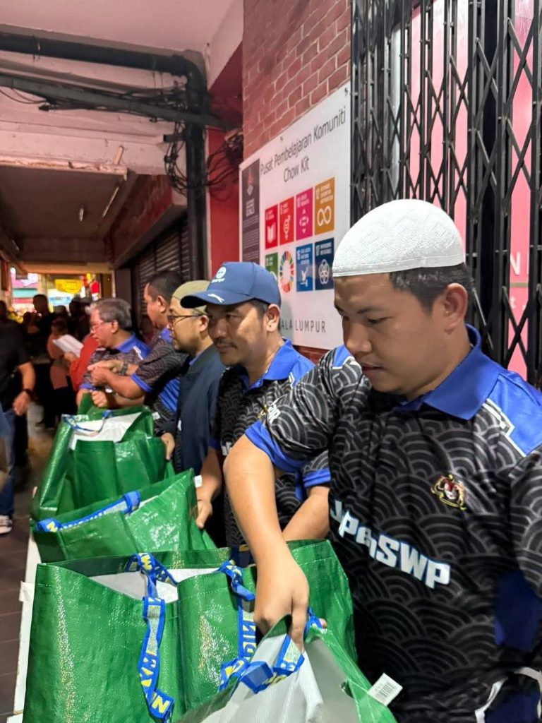 Sekitar Program Jalinan Kasih Komuniti Jalan Chow Kit, dianjurkan oleh JaPenSWP dengan kerjasama DBKL, al-Riqab dan MAIWP. Aktiviti melibatkan solat berjemaah dan penyerahan sumbangan kepada penduduk setempat.