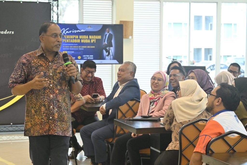 Hadir sama, Ketua Pengarah Pendidikan Tinggi, Datuk Prof. Dr. Azlinda Azman; Timbalan Pengarah (Pusat Pembangunan Kepimpinan) AKEPT, Prof. Madya Dr. Azmul Fahimi Kamaruzaman; Timbalan Pengarah (Pusat Pengurusan Bakat) AKEPT, Prof. Madya Dr. Norazharuddin Shah Abdullah; serta Pengarah Kanan (Kompetensi), Jabatan Pendidikan Politeknik dan Kolej Komuniti (JPPKK), Ts. Abdul Razak Sabtu.