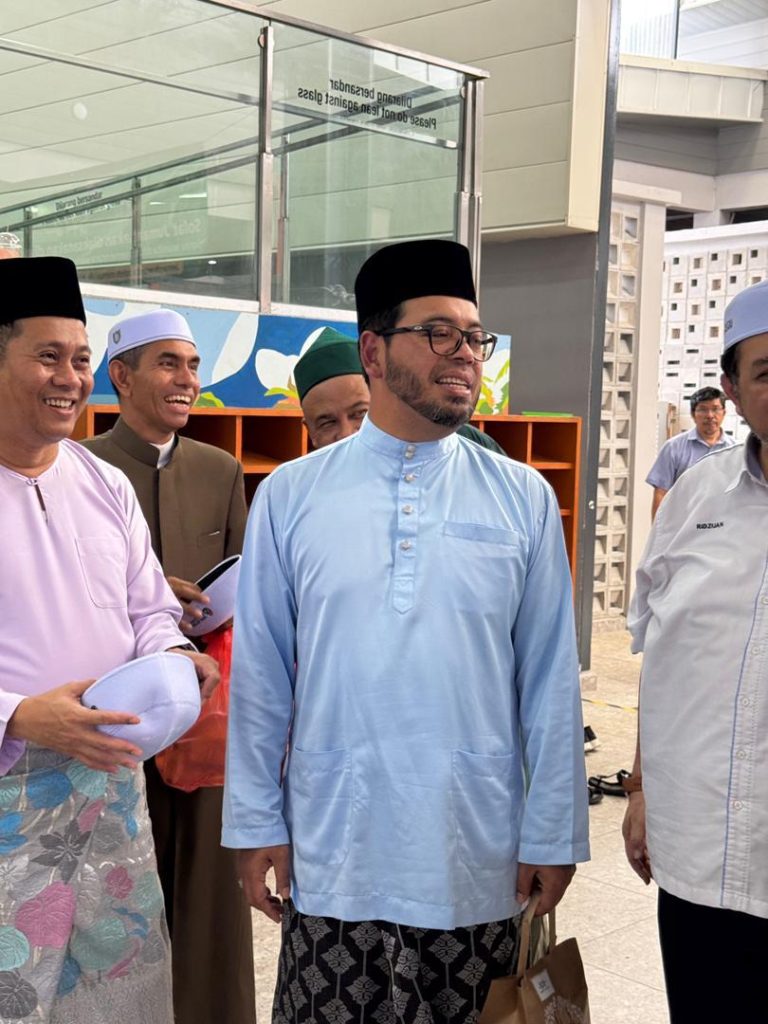 Kami hadiahkan kopiah bersulam Malaysia Madani kepada pengurusan PLUS, LM dan warga Surau.