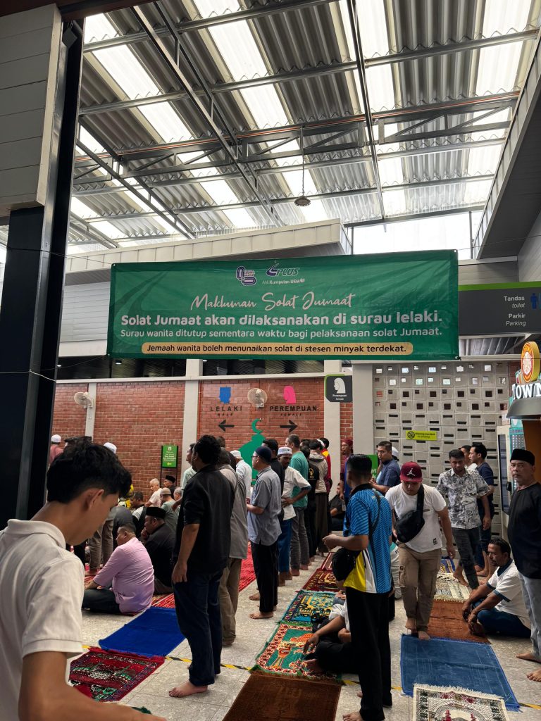 Saya dan pasukan menunaikan Solat Jumaat di Surau Madani – di Kawasan Rehat dan Rawat (R&R) Seremban (Arah Selatan), Negeri Sembilan. Walaupun sekadar niat hadir untuk Solat Jumaat, tapi disambut oleh pengurusan PLUS, LLM dan ahli qaryah. Kami hargai setulusnya.