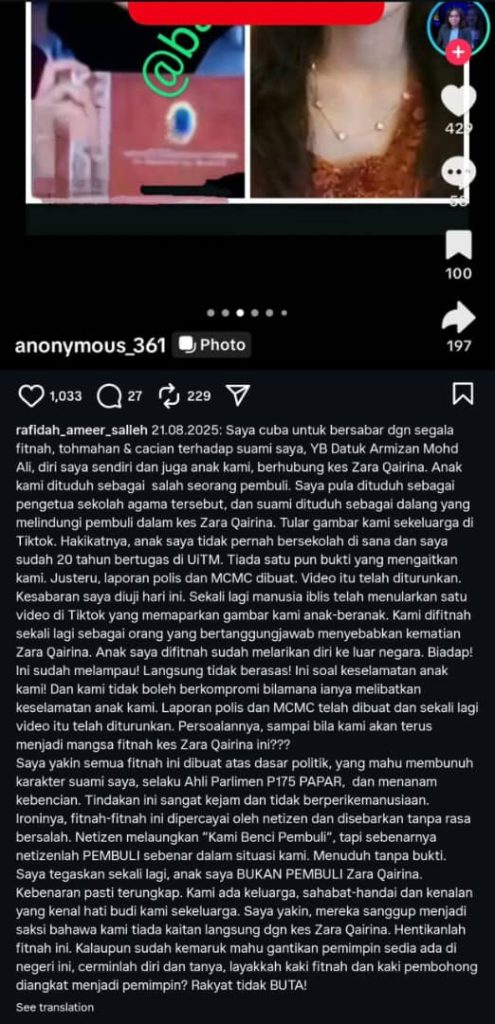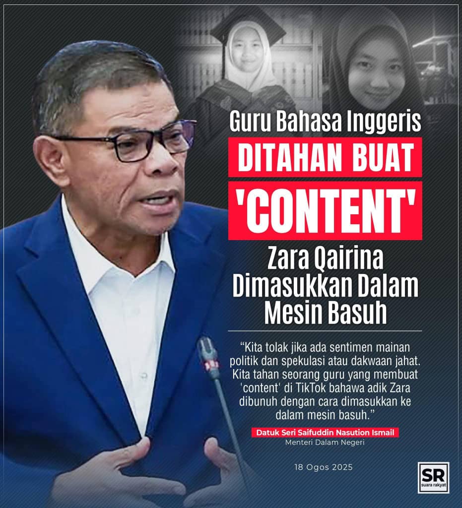 Merasa sangat sebak di jiwa, apabila mendengar penjelasan oleh YB Datuk Seri Saifuddin Nasution, Menteri Dalam Negeri mengenai kes anakanda kita semua – Almarhumah Zara Qairina. Datuk Seri Saifuddin menutup penjelasan dengan membaca doa khas untuk Almarhumah Zara Qairina.