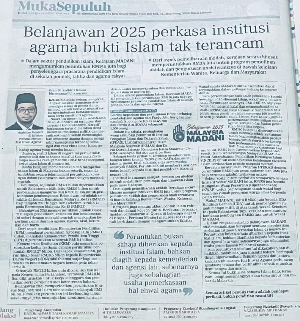 - Belanjawan 2025 Perkasa Hal Ehwal Agama